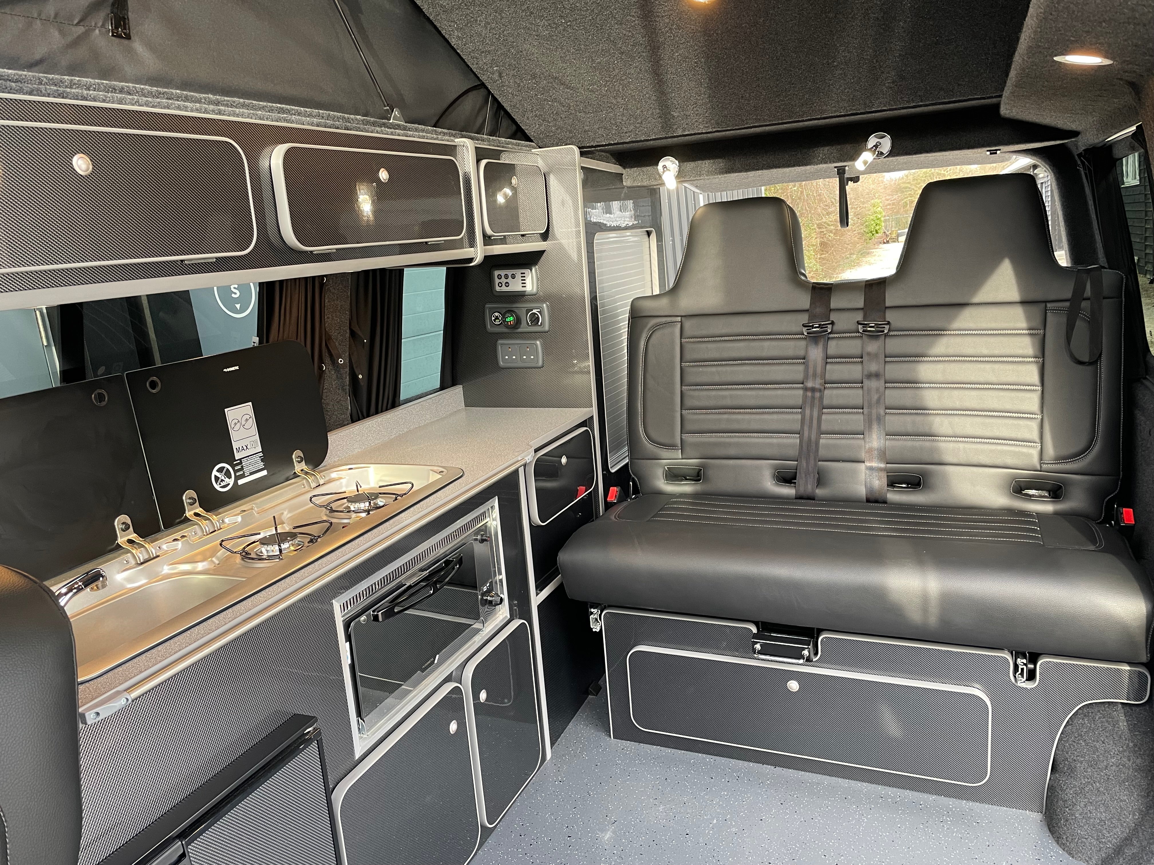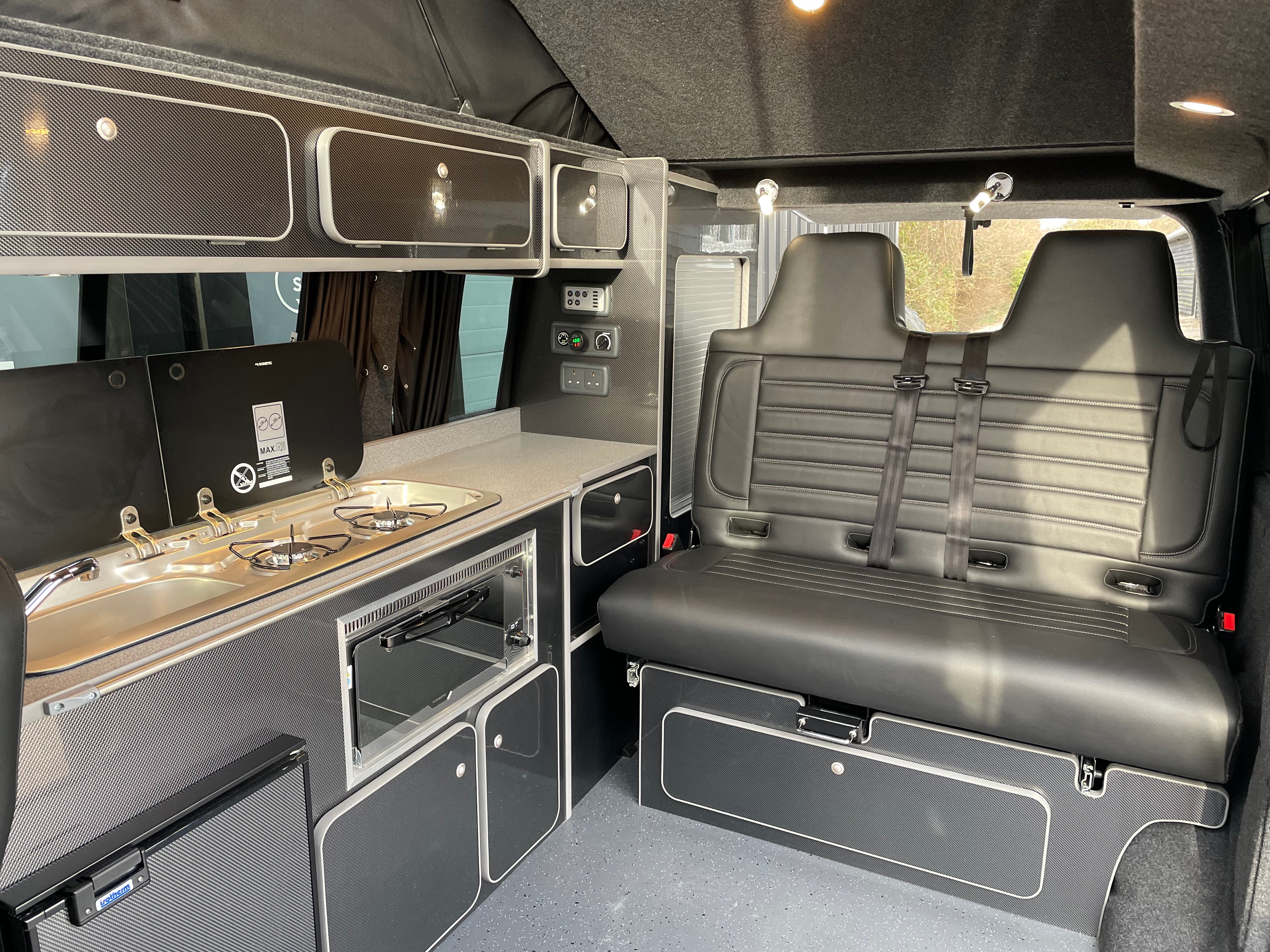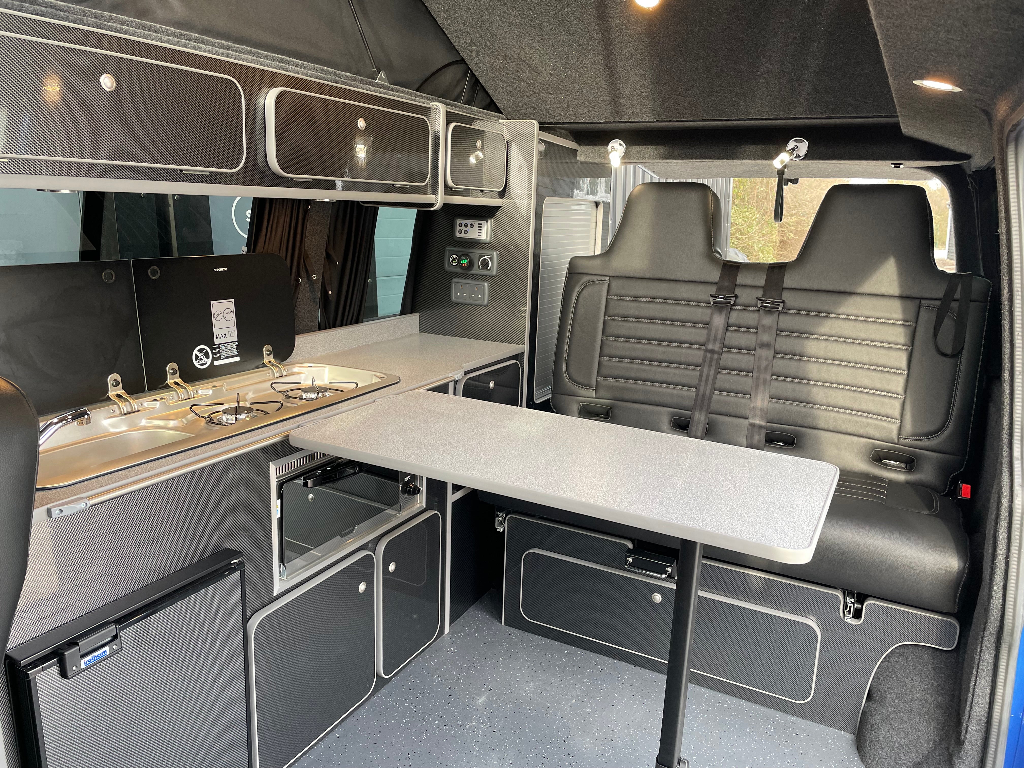 Fabworx Rock and Roll bed; compressor; 42 litre fridge with ice box; 110 amp leisure battery; split charging system; mains electric hook up; entry lights; Smev hob with smoked glass lid; Dometic sink/hob with smoked glass lid; dometic grill; under floor 45 litre fresh water tank; various cupboards and overhead cupboards; under bed storage; wardrobe; LED lighting; fully lined and carpeted; sleeps 4 people; cruise control; excellent bodywork and interior condition; ABS; leather steering wheel; air conditioning; airbag; anti theft system; auxiliary audio input jack for iPod etc; digital screen; bluetooth; bulkhead; CD player; captains seat; central locking; day time driving lights; heated windscreen; front fog lights; electric folding mirrors; a dedicated cupboard to fit a Porta Potti.