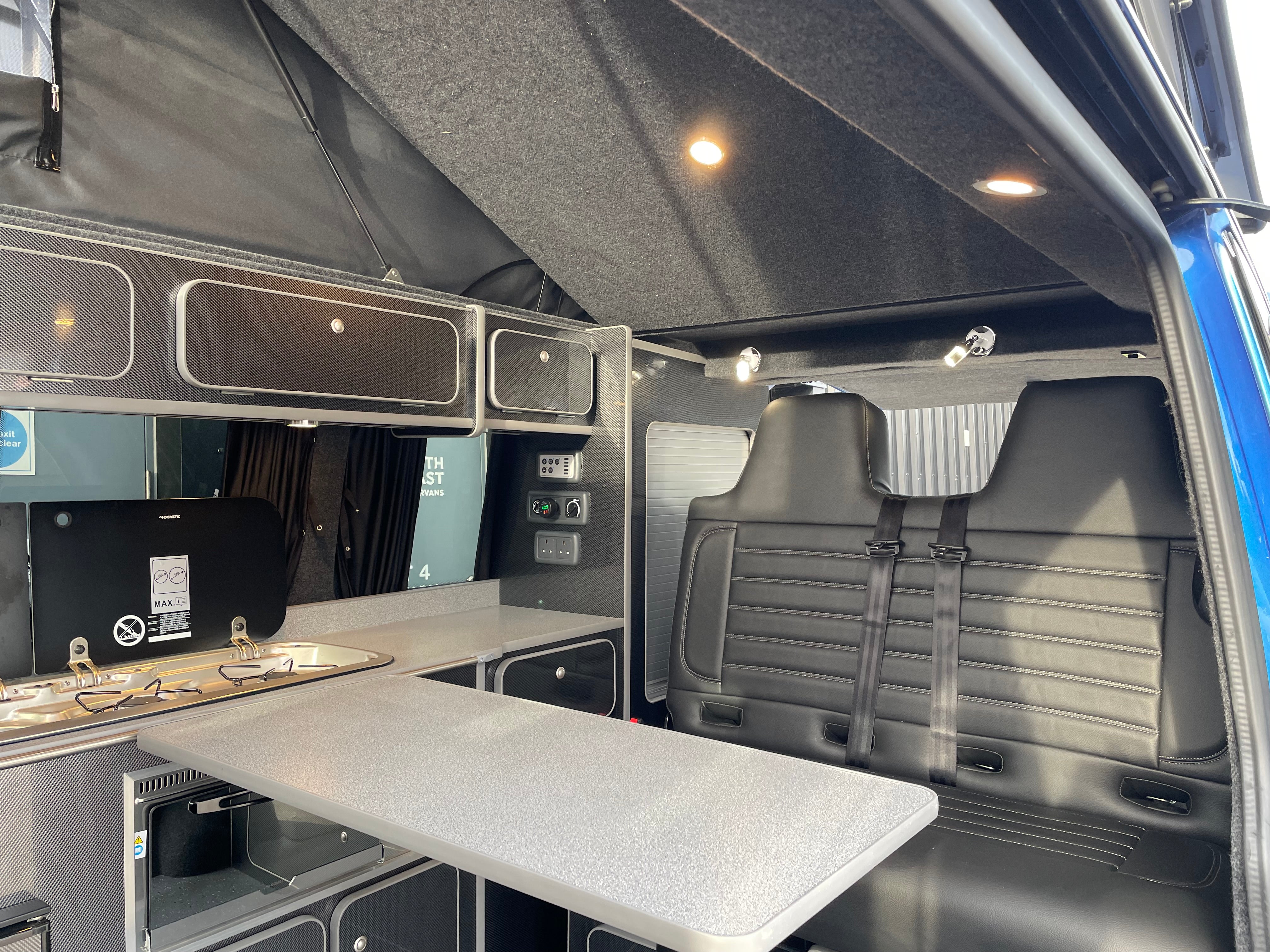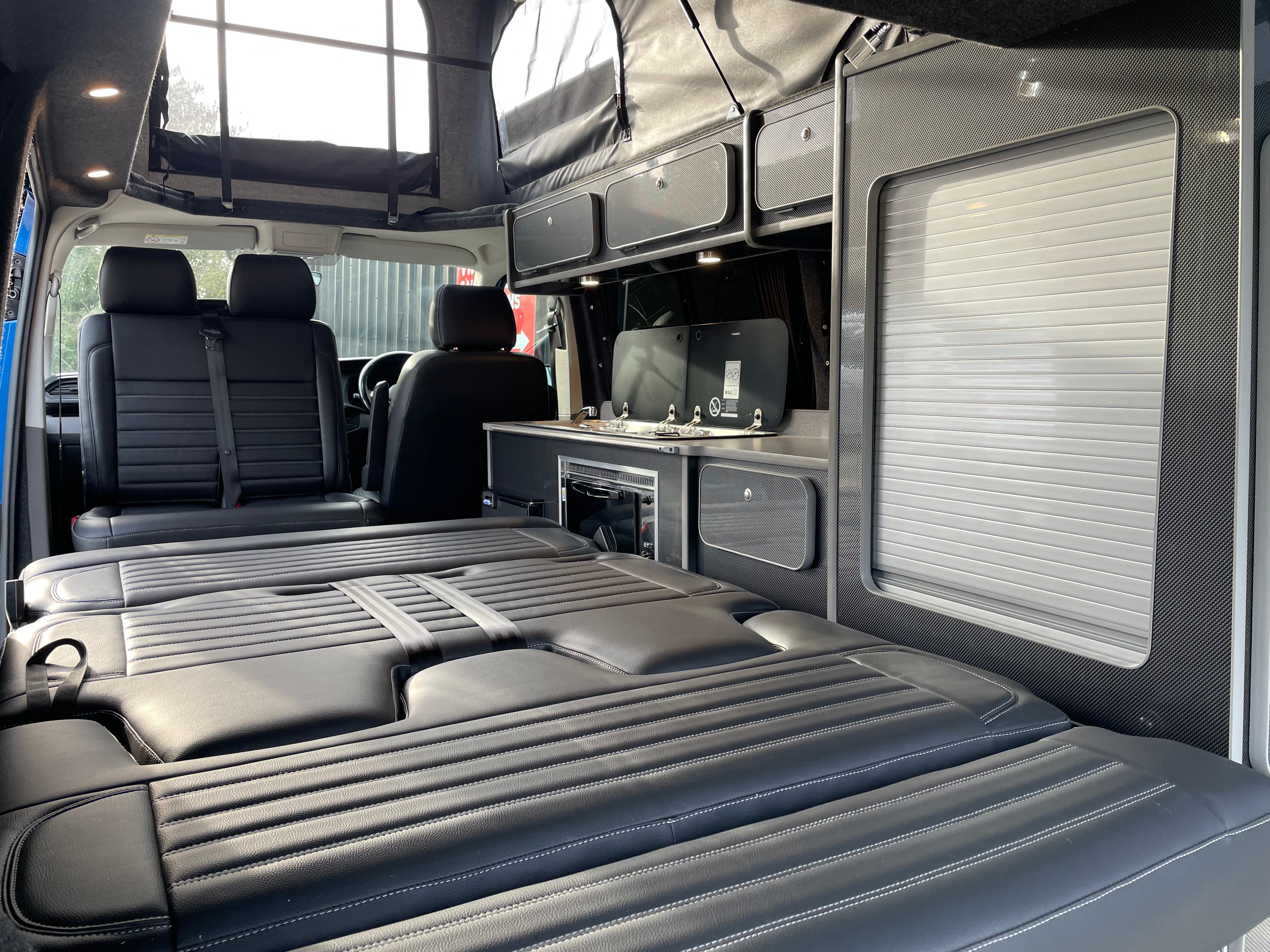This stunning Ravenna Blue VW Highline T6.1 with brand new professionally fitted 4 berth camper conversion is ready to go!
